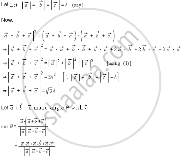 Thus, angle between `veca` and `veca+vecb+vecc` is `cos^(-1) (1/sqrt3)`