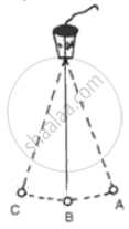 If a pendulum takes 0.5 s to travel from A to B as shown in the following figure, find its time period and frequency.