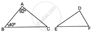 If ΔABC ∼ ΔDEF such that ∠A = 92° and ∠B = 40°, then ∠F = ?