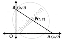 If P(r, c) is midpoint of a line segment between the axes then show that `x/"r" + y/"c"` = 2