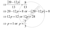 If the points (1, 1, p) and (−3, 0, 1) be equidistant from the plane `vecr.(3hati + 4hatj - 12hatk)+ 13 = 0`, then find the value of p.