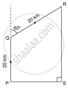 In the given figure, a rocket is fired vertically upwards from its launching pad P. It first rises 20 km vertically upwards and then 20 km at 60° to the vertical. PQ represents the first stage of the journey and QR the second. S is a point vertically below R on the horizontal level as P, find: