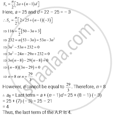 If the sum of a certain number of terms of the A.P. 25, 22, 19, … is 116. Find the last term