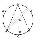 Let AB be a chord of a circle having centre at OPQ be the perpendicular bisector of the chord AB, which intersects at M and it always passes through O.