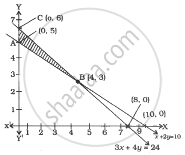 The shaded region in the figure is the feasible region ABC determined by the bounded system of constraints (2) to (4). The coordinates of the comer points are (0, 5), (4, 3), and (0, 6). At these points, we now evaluate Z = 200x + 500y.
