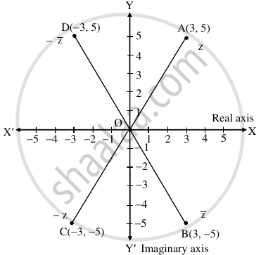 The above complex numbers will be represented by the points A(3, 5), B(3, –5), C(–3, –5), D(–3, 5) respectively as shown below: