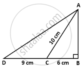In a right-angled triangle ABC,ABC = 90°, AC = 10 cm, BC = 6 cm and BC produced to D such CD = 9 cm. Find the length of AD.