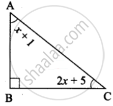In a right angled triangle ABC, ∠B is right angle, ∠A is x + 1 and ∠C is 2x + 5. Find ∠A and ∠C.