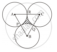 Area of the shaded region = Area of ΔABC − (sum of areas of sectors APR, BPQ and CQR)