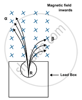 In following Figure shows a mixed source R of alpha and beta particles in a thick lead walled container. The particles pass through a magnetic field in a direction perpendicular to the plane of paper inwards as shown by ×.
