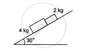 In the following figure shows two blocks in contact sliding down an inclined surface of inclination 30°. The friction coefficient between the block of mass 2.0 kg and the incline is μ1, and that between the block of mass 4.0 kg and incline is μ2. Calculate the acceleration of the 2.0 kg block if (a) μ1 = 0.20 and μ2 = 0.30, (b) μ1 = 0.30 and μ2 = 0.20. Take g = 10 m/s2.