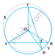 In the following figure, AB and CD are two chords of a circle intersecting each other at point E. Prove that ∠AEC = `1/2` (Angle subtended by arc CXA at centre + angle subtended by arc DYB at the centre).