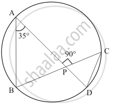 In the given figure, chords AD and BC intersect each other at right angles at a point P. If ∠DAB = 35°, then