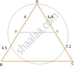 In Δ ABC, D and E are points on the sides AB and AC respectively. If AD= 4cm, DB=4.Scm, AE=6.4cm and EC=7.2cm, find if DE is parallel to BC or not.