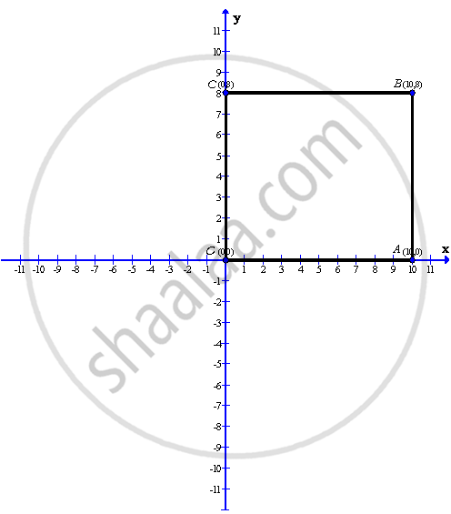 After plotting the points O(0,0), A(10,0), B(10,8) and C(0,8) on a graph paper; we get the above rectangle OABC and the required co-ordinates of the vertices are A(10,0), B(10,8) and C(0,8)