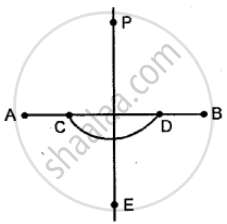 - From point C and D draw arcs that intersect each other at point E, now draw PE, perpendicular to AB.