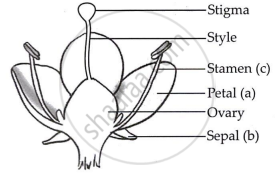 In the diagram of a bisexual flower given in figure, draw the missing part and label the parts marked (a), (b) and (c). Also, label the missing part that you draw.