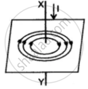 The magnetic lines of force due to current in the straight conductor XY are shown in figure given alongside. The arrows on the magnetic lines of force shows the direction of magnetic field.