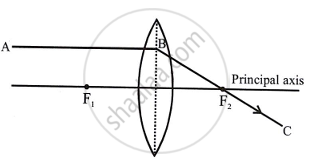 (b) The incident ray AB emerges after refraction through convex lens takes the path along BC.