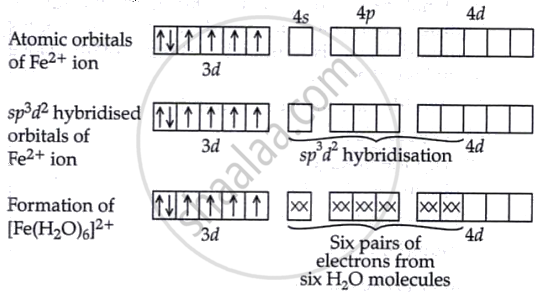 The complex has sp3d2 hybridisation due to the coordination number of 6. This leads to an octahedral shape. Since H2O is a weak field ligand, it does not cause electron pairing, so the Fe2+ complex has unpaired electrons. Therefore, [Fe(H2O)]2+ is paramagnetic.