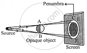 Draw a ray diagram to show the formation of the shadow of an opaque object by a point source of light. How is the size of shadow affected if the screen is moved away from the object?