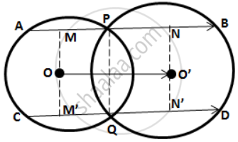 Drop OM and O'N perpendicular on AB and OM' and O'N' perpendicular on CD.