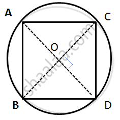 In the given figure, a square is inscribed in a circle with center O. Find: