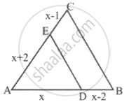 In the given figure. DE || BC. If AD = x, DB = x – 2, AE = x + 2 and EC = x – 1, then find the value of x.