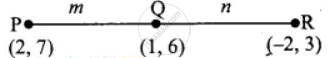 In what ratio does the point Q(1, 6) divide the line segment joining the points P(2, 7) and R(−2, 3)