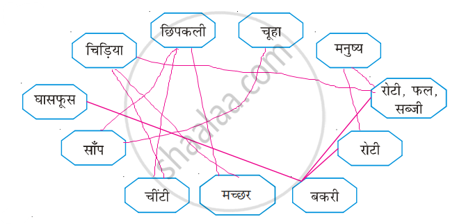 कौन क्या खाता है? उसे लाइन खींचकर मिलाओ। एक उदाहरण दिया है।