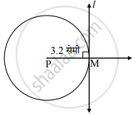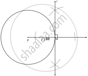केंद्र P व त्रिज्या 3.2 सेमी असलेल्या वर्तुळाला त्यावरील M बिंदूतून स्पर्शिका काढा.