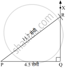 यामुळे ∆PQR तयार होतो, जिथे PQ = 4.5 सेमी, PR = 11.7 सेमी आणि ∠PQR = 90° आहे.