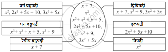 खाली काही बहुपदी दिल्या आहेत. त्या बहुपदी दिलेल्या चौकटींत योग्य ठिकाणी लिहा.