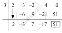 ∴ भागाकार = 2x3 −3x2 + 7x −17 आणि बाकी = 51