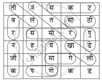 खालील चौकोनांतील अक्षरांमध्ये शब्दयोगी अव्यये लपलेली आहेत. उभ्या, आडव्या, तिरप्या पद्धतीने अक्षरे घेऊन शब्दयोगी अव्यये बनवा व दिलेल्या जागेत लिहा.