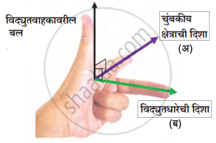 खालील दिलेल्या फ्लेमिंगच्या डाव्या हाताच्या नियमाच्या आकृतीचे निरीक्षण करून ‘अ’ आणि ‘ब’ या ठिकाणी योग्य नामनिर्देशन करा.