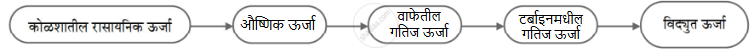 औष्णिक विद्युत निर्मिती केंद्रातील ऊर्जा रूपांतरण.