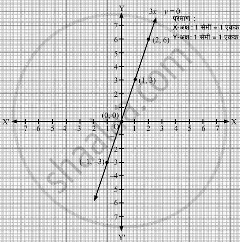 ∴ ही रेषा म्हणजेच 3x − y = 0 या समीकरणाचा आलेख आहे.