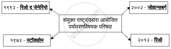 खालील संकल्पनाचित्र पूर्ण करा. संयुक्त राष्ट्रांदवारा आयोजित पर्यावरणविषयक परिषदा - Political Science [राज्यशास्त्र]