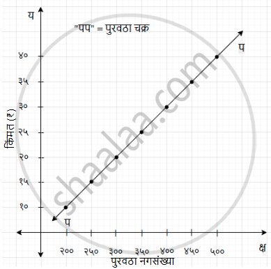 जेव्हा वस्तूची किंमत ५ रुपयांनी वाढते, तेव्हा पुरवठा ५० नगांनी वाढतो (हे किंमत आणि पुरवठा यांच्यातील प्रत्यक्ष संबंध दर्शवते).