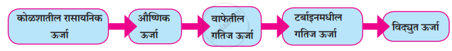 खालील विद्युत निर्मिती केंद्रात टप्याटप्याने होणारे उर्जा रूपांतरण स्पष्ट करा.