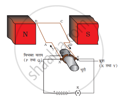 कुण्डली ABCD में प्रवाहित धारा चालक X के माध्यम से स्रोत बैटरी से प्रवेश करती है और ब्रश Y के माध्यम से वापस बैटरी में प्रवाहित होती है।