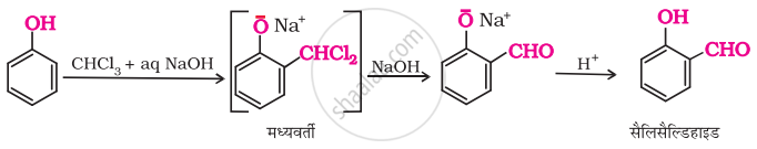 (v) फ़ीनॉल की सोडियम हाइड्रॉक्साइड की उपस्थिति में क्लोरोफ़ार्म के साथ अभिक्रिया से बेन्जीन में, −CHO समूह ऑर्थो स्थिति पर प्रवेश कर जाता है। इस अभिक्रिया को राइमर-टीमन अभिक्रिया कहते हैं।