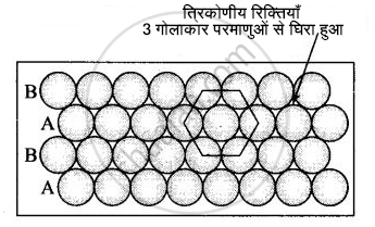 | (iii) त्रिविमा में षट्कोणीय निविड संकुलन | (d) एकान्तर परत में गोलों का पैटर्न पुनरावृत्त होता है । |