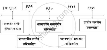इतिहास विषयाशी संबंधित कोशांच्या संदर्भातील पुढील कालरेषा पूर्ण करा.