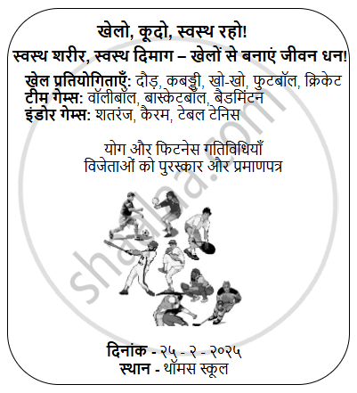 'क्रीड़ा सप्ताह' पर पोस्टर बनाओ और कक्षा में प्रदर्शनी लगाओ। - Hindi (Second/Third Language) [हिंदी (दूसरी/तीसरी भाषा)]