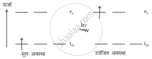 समन्वय यौगिक क्रिस्टल क्षेत्र सिद्धांत के लिए जिम्मेदार रंग प्रदर्शित करते हैं, जो तत्वों के d-d संक्रमण के अनुरूप होते हैं। उदाहरण के लिए, रिक्त अवस्था से इलेक्ट्रॉन का उत्तेजित होना जैसे प्रकाश को अवशोषित करना t2g स्तर से इलेक्ट्रॉन को उत्तेजित करेगा। अब, [Ti(H2O)6]3+ के मामले में जब पीले हरे क्षेत्र की ऊर्जा के अनुरूप प्रकाश को परिसर द्वारा अवशोषित किया जाता है, तो यह t2g स्तर से इलेक्ट्रॉन को एक स्तर तक उत्तेजित करेगा। इस प्रकार, परिसर का रंग बैंगनी होगा।