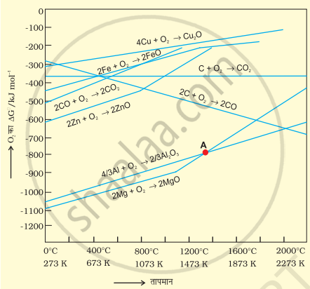 एलिंघम आरेख द्वारा स्पष्टीकरण – कुछ ऑक्साइडों के विरचन में AG° तथा T के एलिंघम आरेख निम्नवत् हैं –