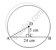 Length of a chord of a circle is 24 cm. If distance of the chord from the centre is 5 cm, then the radius of that circle is 13 cm.
