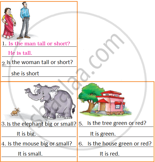 Copy each question and then choose the right answer from the red box. One has been done for you.